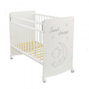 401001-8 Кровать детская Tomix "Viva" DSK-1 (опуск.планка, качалка, колеса, рисунок Мишка на луне
