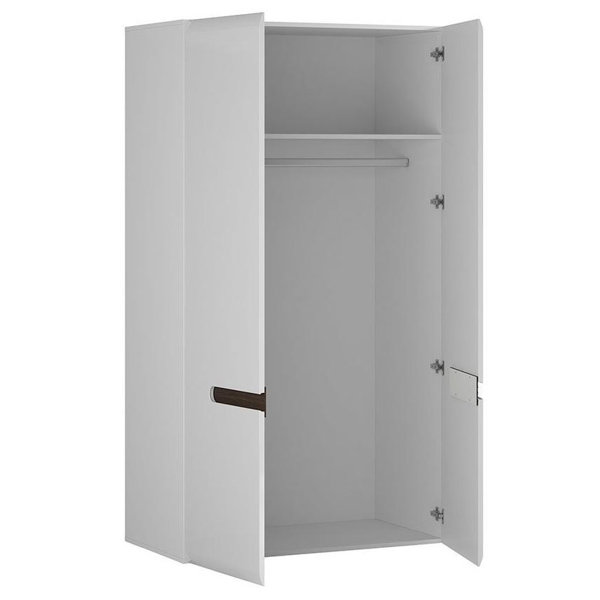 Шкаф 2Д Амбра не займет много места, он подойдет для любой комнаты. Шкаф гармонично сочетается с другими изделиями данной коллекции, создавая единую стилистическую композицию, или может использоваться как самостоятельный элемент интерьера. Фасад выполнен из мдф белый глянец, корпус из лдсп белый.
