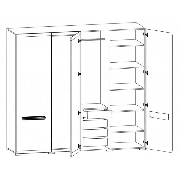 Шкаф 4Д Амбра подойдет для любой комнаты. Шкаф гармонично сочетается с другими изделиями данной коллекции, создавая единую стилистическую композицию, или может использоваться как самостоятельный элемент интерьера. Фасад выполнен из мдф белый глянец, корпус из лдсп белый.