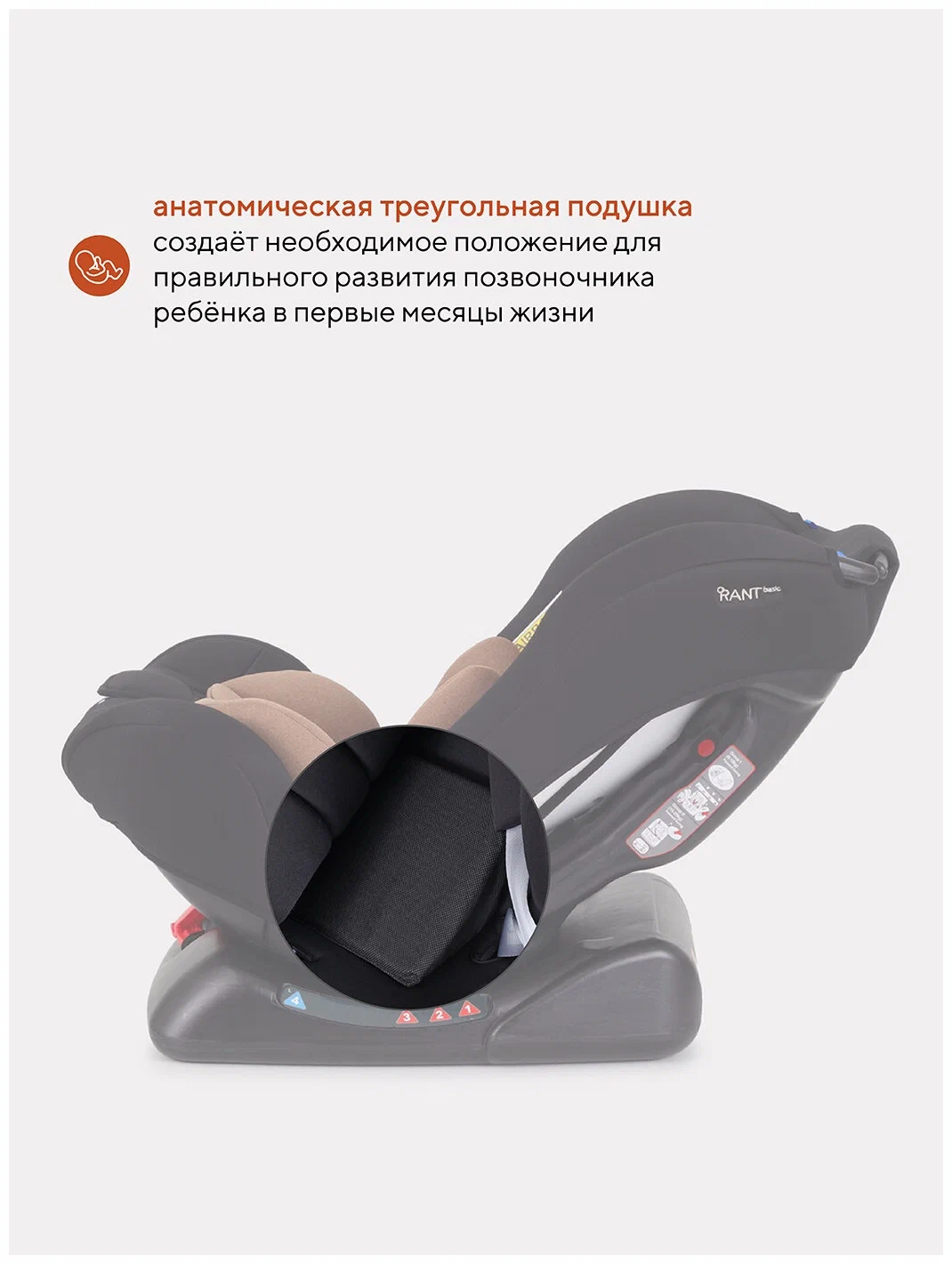 в комплект входит анатомическая треугольная подушка, которая создаёт необходимое положение для правильного развития позвоночника ребёнка в первые месяцы жизни