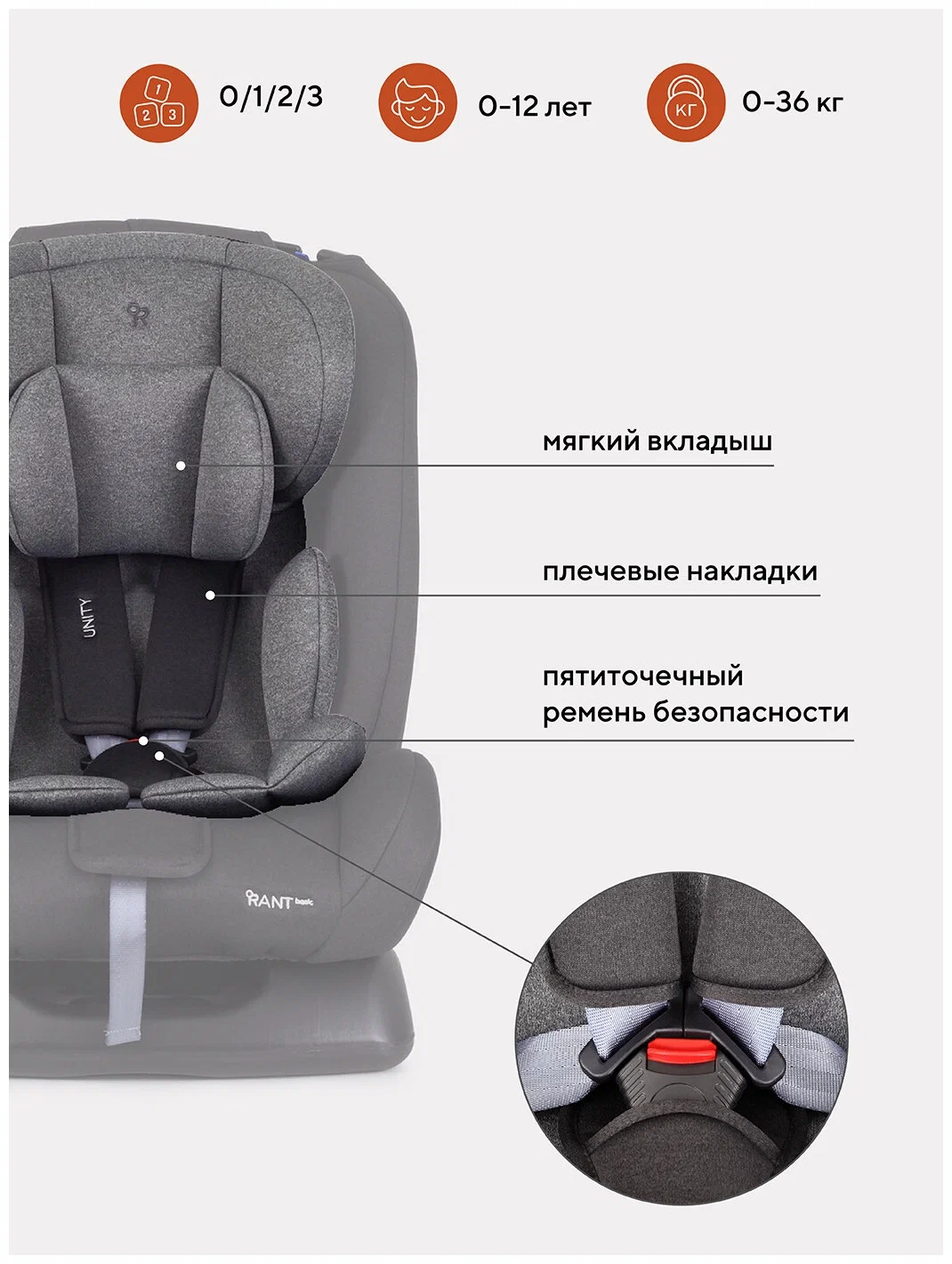 Автокресло детское Rant basic Unity арт. ZY26, группа 0+/1/2/3 от 0 до 12 лет вес 0-36 кг рост 40-145 см
