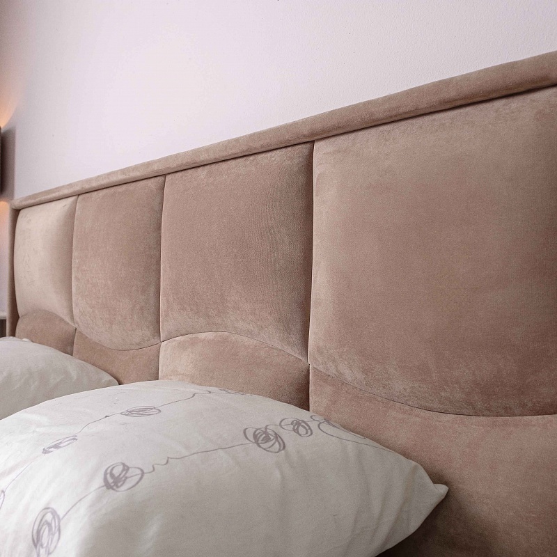 Кровать Brownie с изголовьем из микрофибры цвета brown-grey. Мягкие подушечки образуют рисунок - волну, обрамляющая изголовье рама укутана в мягкую ткань. В изножье кровати - необычные опоры со скосом. Кровать может комплектоваться основаниями на выбор: Основание универсальное с подъемным механизмом (1800), Основание универсальное с гибкими ламелями (1800) Дерево, Основание универсальное с гибкими ламелями (1800) Металл. Основание - это отдельный модуль, поэтому докупается отдельно. Рекомендуемая высота матраса для кроватей Brownie с подъемным механизмом - 20 см.