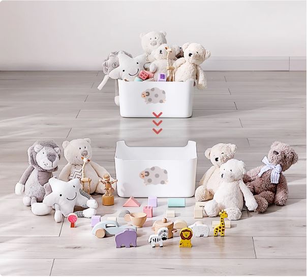 Дизайн крыши замка привлекает внимание ребенка и помогает взять на себя инициативу по упаковке игрушек и книг с картинками