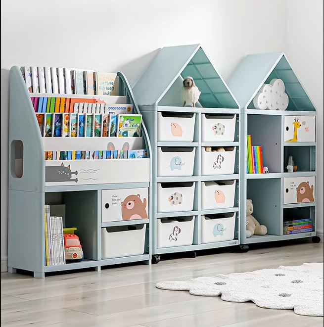 Детская книжная полка Yeya с картинками, встроенная полка для хранения детских игрушек, вместительный классификационный шкаф для хранения