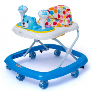 Яркие музыкальные ходунки с милым медвежонком на игровой панели не оставят равнодушными ни малышей, ни их родителей. Возможность регулировки высоты ходунков позволяет выбрать нужное положение под рост ребенка. Мягкое сиденье с высокой спинкой обеспечивает комфорт. Ткань сиденья съемная, что упрощает уход за ходунками. Спереди ходунков располагается игровая панель с музыкальными кнопками, которые подсвечиваются. Малыш может прослушать 3 веселые мелодии. Ходунки компактно складываются и оснащены 7-ю пластиковыми колесами. Есть возможность зафиксировать ходунки с помощью встроенных стопперов.