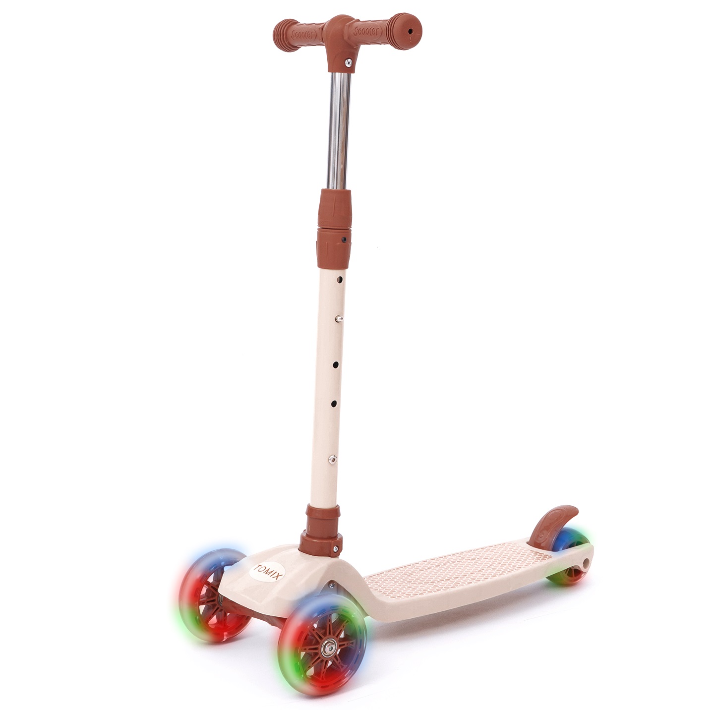 Детский трехколесный самокат Tomix Rapid со светящимися колесами станет любимым транспортом вашего ребенка! Данная модель предназначена для детей от 3 до 7 лет. Руль регулируется в 4 положениях по высоте, благодаря чему самокат растет вместе с ребенком. Складная конструкция позволяет легко хранить и перевозить самокат, куда бы вы не поехали. Гелевые колеса с подсветкой обеспечивают плавный и мягкий ход. Яркие стильные расцветки обязательно понравятся детям!