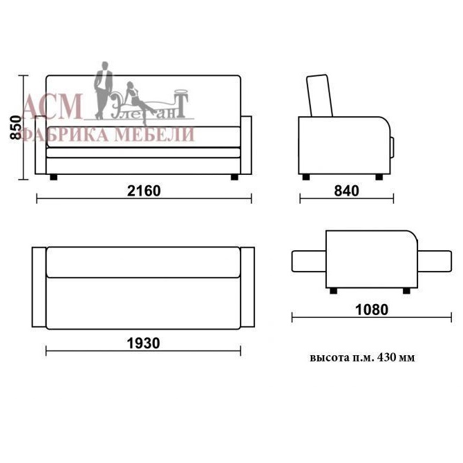 При трансформации требуется расстояние между диваном и стеной. Задняя стенка не в обивочной ткани. Посадочное место: пружина змейка, геовойлок, листовой ППУ. Высота посадочного место 430 мм. Емкость: вместительный ламинированный бельевой ящик 1770х620х190 мм. Чехол: из ткани. Опоры: Пластик.