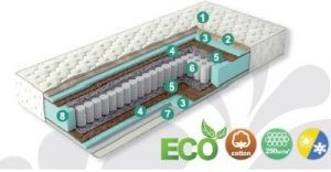 Кокосовое волокно - Наполнитель из спрессованных волокон кокосового ореха, пропитанных специальным составом на основе натурального латекса. Чрезвычайно прочен и долговечен, придает упругость и жесткость.