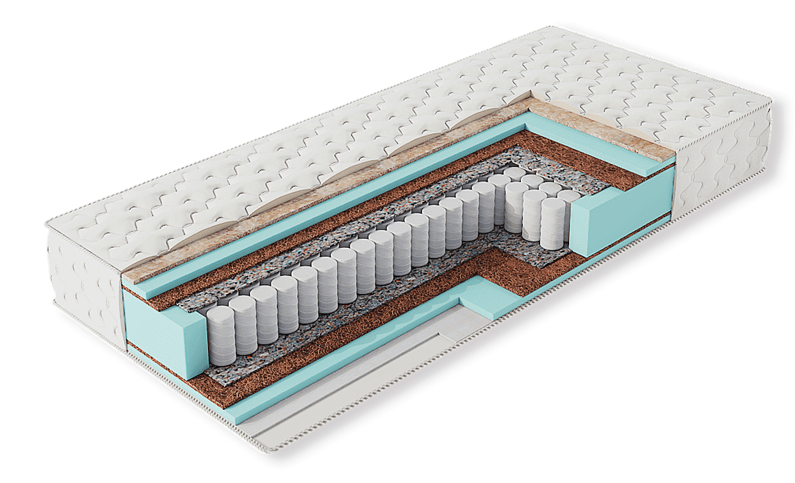 Матрас средней степени жесткости на основе пружинной системы "Pocket Spring" (250 шт/м2). В качестве наполнителей используются материалы – натуральное кокосовое волокно и пенополиуретан. Пенополиуретан придает спальному месту комфорт и мягкость, а кокос – жесткость. Матрас обладает свойствами "Зима/Лето", с одной стороны используется хлопковый наполнитель, который обеспечивает легкую прохладу в летнее время, а с другой стороны шерстяной наполнитель - тепло и уют зимой.