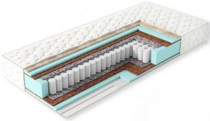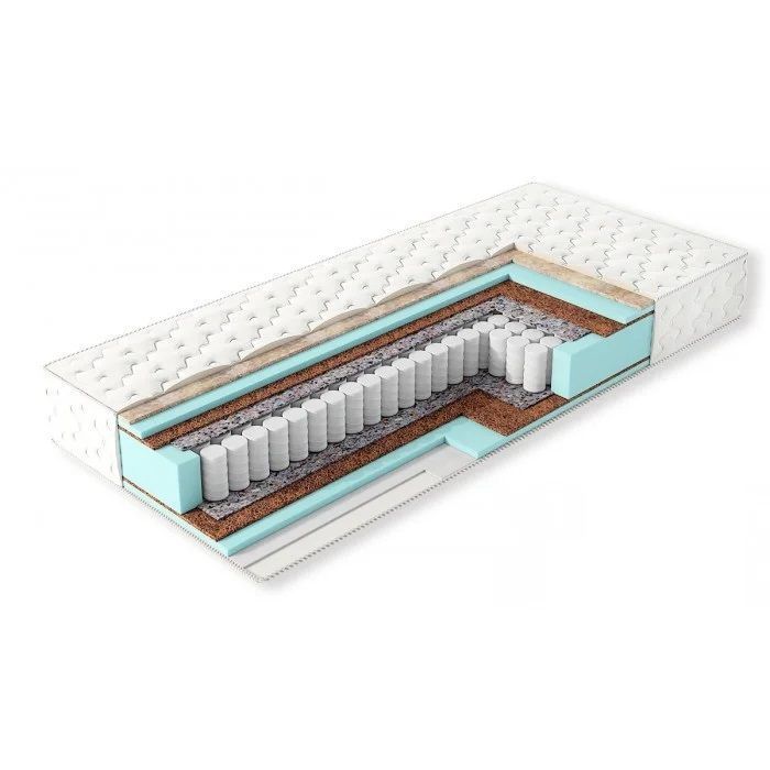 Матрас средней степени жесткости на основе пружинной системы "Pocket Spring" (250 шт/м2). В качестве наполнителей используются материалы – натуральное кокосовое волокно и пенополиуретан. Пенополиуретан придает спальному месту комфорт и мягкость, а кокос – жесткость. Матрас обладает свойствами "Зима/Лето", с одной стороны используется хлопковый наполнитель, который обеспечивает легкую прохладу в летнее время, а с другой стороны шерстяной наполнитель - тепло и уют зимой.