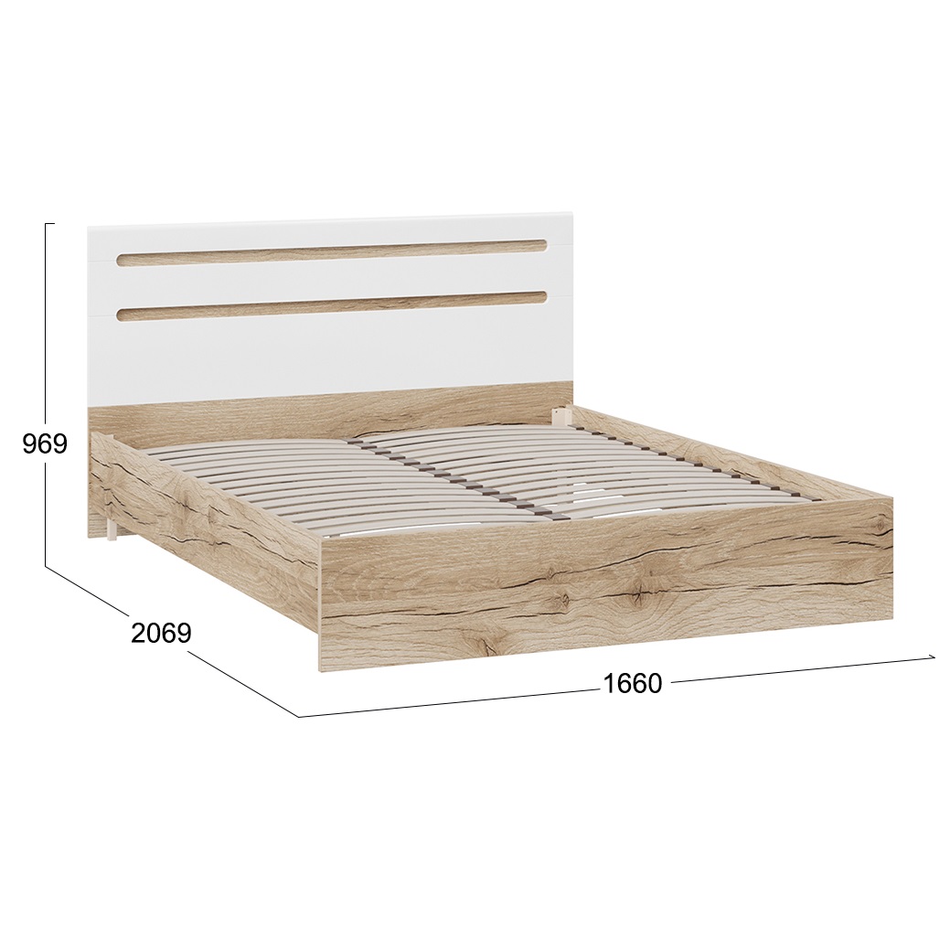 Фьюжн ТД-260.01.03 Кровать (Белый глянец/Дуб Делано) / ТРИЯ