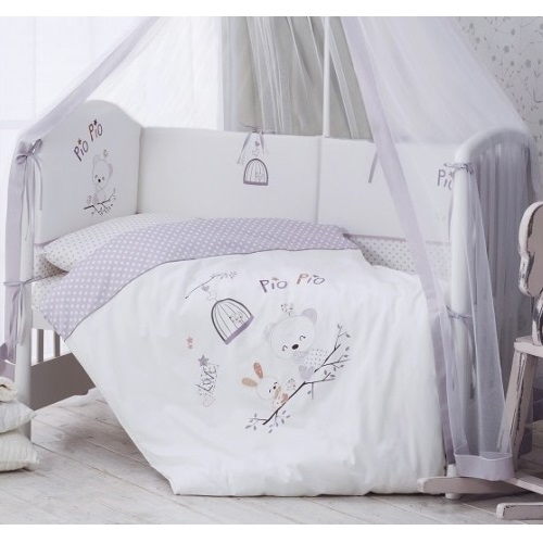 Мы создали модель «Pio Pio», чтобы заботиться о вашем малыше и во сне, и в течение дня. Чтобы детский сон был спокойным и глубоким, комплект изготовлен из сатина нежных пастельных оттенков. Балдахин создает атмосферу уюта, защищает спящего малыша от лишнего света и пыли. А когда маленький первооткрыватель проснется, то обязательно обрадуется новым друзьям – вышитым персонажам. Комплект подходит для детской кроватки со спальным местом 120х60 см.