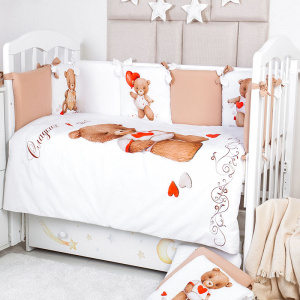 RANT Комплект "Валентинка" Рант (6 предметов) / RANT 122246 122246 Комбинированный комплект с изображением. Изготовлен из бязи и сатина (100% хлопок) с бортиками-подушками на завязках (2 бортика 60x30 см, 8 бортиков-подушек 30x30 см). Чехлы на молнии, наполнитель холлофайбер. Простынь на резинке. Подходит для прямоугольной и овальной кроватки. Особенности: 2 подушки 60x30 см, 8 подушек 30x30 см Подушка: 40x60 см Наволочка: 41x61 см Одеяло: 100x140 см Пододеяльник: 104x144 см Простынь на резинке: 60x120 см