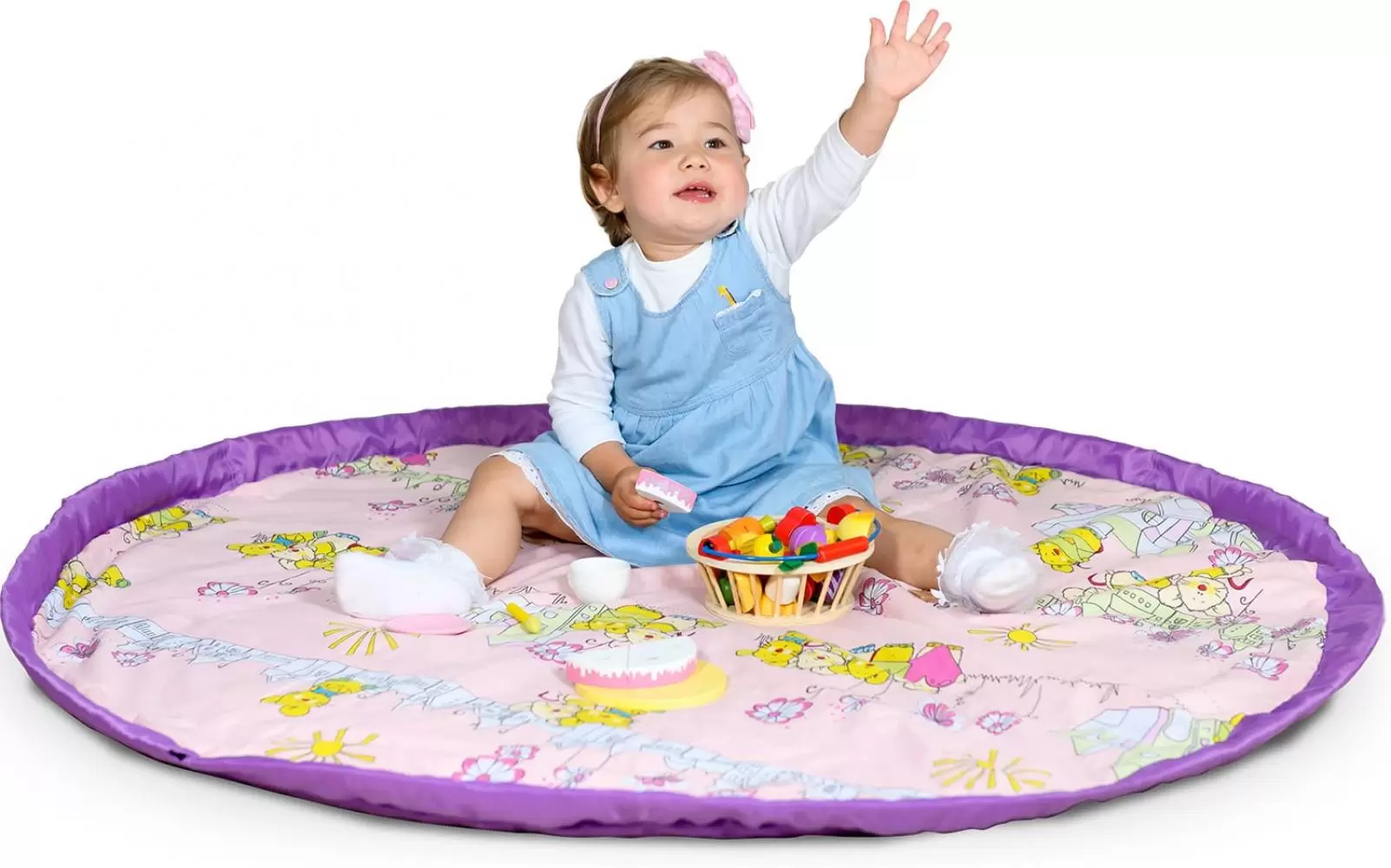 Коврик-матрац универсальный (КМ/М с медвежатами). Диаметр коврика 140 см. Удобно стягивается на шнурок с фиксатором, превращаясь в мешок для игрушек, Материал внешней стороны - oxford