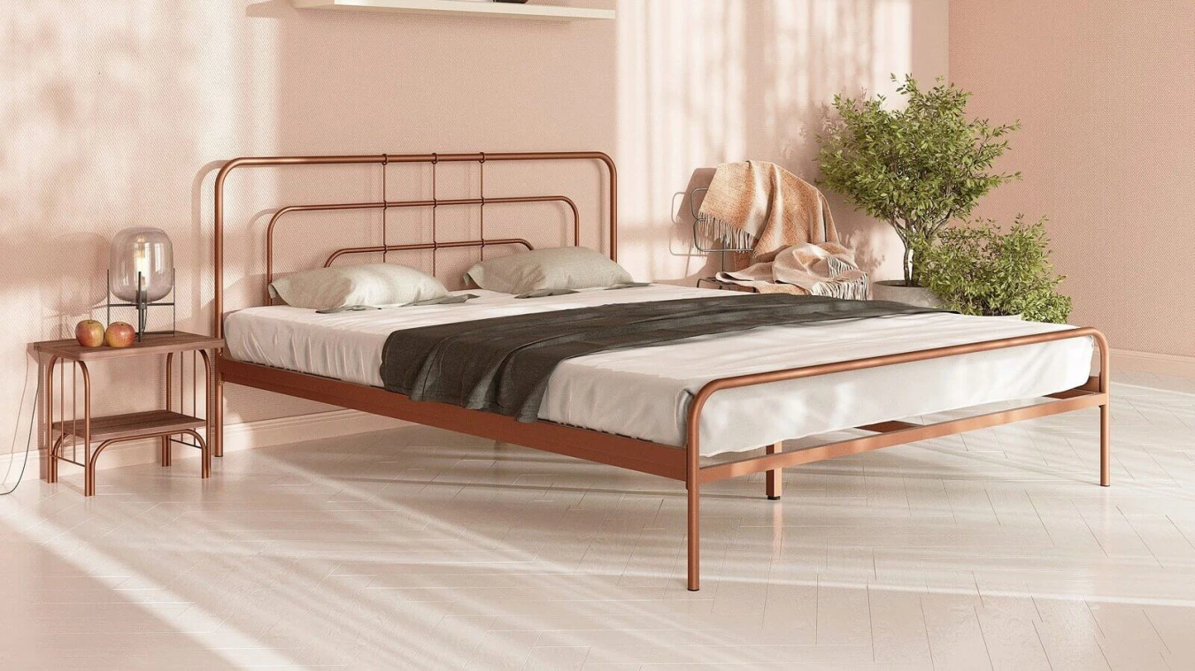 ASKONA Кровать 200*140 Modena (Модена) bronza matic / ASKONA 124437 124437 Металлическая кровать Мodena (Модена) выполнена в элегантном матовом золоте. Современный дизайн придаст интерьеру строгость и лаконичность, а высокая спинка с необычной геометрией преобразит атмосферу, сделав её более сказочной. Кровать отлично впишется в современные интерьеры, особенно хай-тек, минимализм, лофт, индастриал.