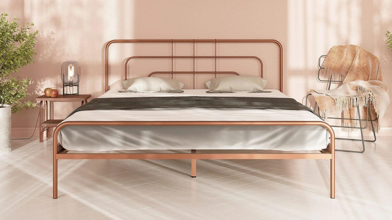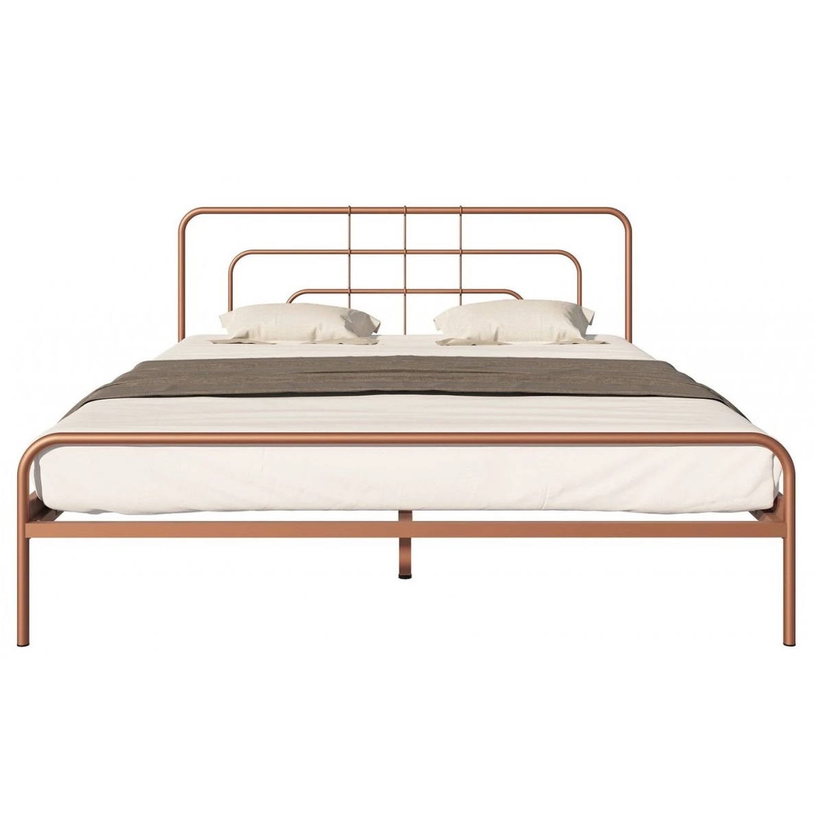 Металлическая кровать Мodena (Модена) выполнена в элегантном матовом золоте. Современный дизайн придаст интерьеру строгость и лаконичность, а высокая спинка с необычной геометрией преобразит атмосферу, сделав её более сказочной. Кровать отлично впишется в современные интерьеры, особенно хай-тек, минимализм, лофт, индастриал.