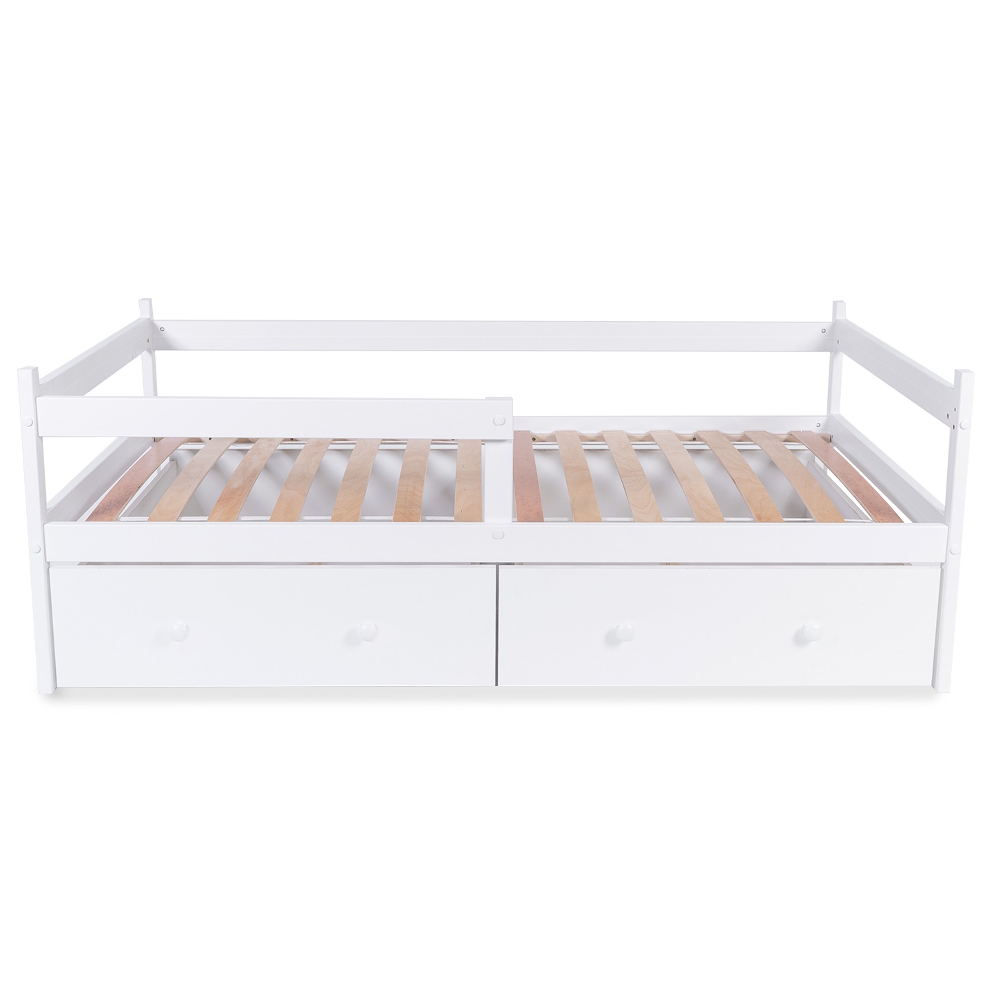 Одна из самых популярных моделей подростковых кроватей Tomix Honey отлично впишется в современный интерьер. Благодаря компактному размеру, лаконичному дизайну и наличию ящиков для хранения, детская кровать подойдет для небольших комнат, где каждый квадратный метр должен использоваться функционально. Кровать оснащена защитным бортиком, который может быть установлен по вашему желанию с нужной стороны, два выкатных ящика на колесах позволят хранить детские вещи и игрушки. Кровать изготовлена из древесины березы, ящики из ЛДСП, фасады ящиков – МДФ. Все детали окрашены безопасными лаками и красками на водной основе, не вызывающими аллергических реакций у детей.