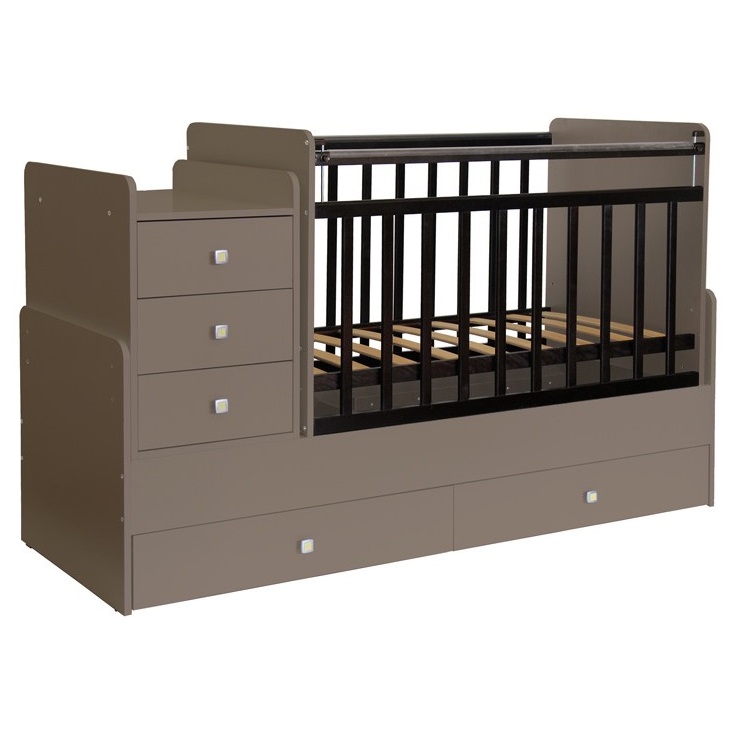 Детская кроватка — трансформер Фея 1100 — многофункциональная модель с пеленальным комодом и механизмом качания. Цвет латте позволит вписаться кроватке в любой интерьер детской комнаты. Кроватка-трансформер 1100 имеет большой диапазон расцветок и подойдет, в первую очередь, для квартир с небольшой площадью. Под кроваткой 2 выдвижных ящика, позволяющих удобно разместить вещи и игрушки младенца на небольшом пространстве. Кроватка-трансформер Фея для новорожденных оснащена ортопедическим ложем, что очень важно для правильного развития малыша. Чтобы маме было удобно поднимать и класть в кроватку ребенка ложе устанавливается в самое верхнее положение. Когда малыш научится переворачиваться и садиться ложе следует опустить в среднее положение. При этом мама сможет опустить бортик, если будет укладывать или поднимать малыша.