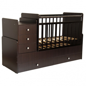 Кроватка-трансформер Фея 1100 с пеленальным комодом и механизмом качания. Кроватки-трансформеры имеют большой диапазон расцветок и подойдут, в первую очередь, для квартир с небольшой площадью. Под кроваткой 2 выдвижных ящика, позволяющих удобно разместить вещи и игрушки малыша на небольшом пространстве. Кроватка-трансформер Фея 1100 оснащена ортопедическим ложем, что очень важно для правильного развития малыша. Чтобы маме было удобно поднимать и класть в кроватку новорожденного, ложе устанавливается в самое верхнее положение. Когда малыш научится переворачиваться и садиться, ложе следует опустить в среднее положение. При этом мама сможет опустить бортик, если будет укладывать или поднимать малыша. Данная модель соответствует всем нормам безопасности. Массив березы не рассыхается, каждая кроватка оборудована пластиковыми накладками на бортики, чтобы Ваш ребенок не испортил зубки. В комплект входит независимый комод с 3 ящиками и пеленальный столик.