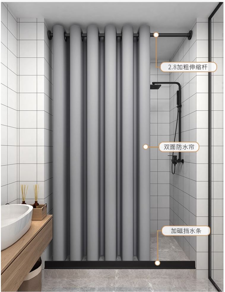 Магнитная занавеска для душа в ванной комнате, водонепроницаемая ткань, Бипай /