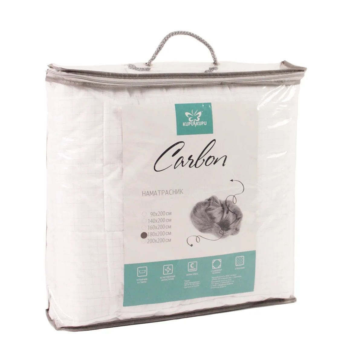 Наматрасник «Карбон» стеганый с резинкой по углам, с наполнителем - силиконизированным полиэфирным волокном. Ткань чехла белого цвета, выполнена из высокотехнологичной микрофибры с нитями карбона. Наматрасник «Карбон» выполняет не только защитную функцию, но и обеспечивает комфорт во время сна. Не скользит, удобно крепится, экологичен и гипоаллергенен. Отлично сглаживает неровности спального места. Прекрасное приобретение для людей, страдающих от аллергии.