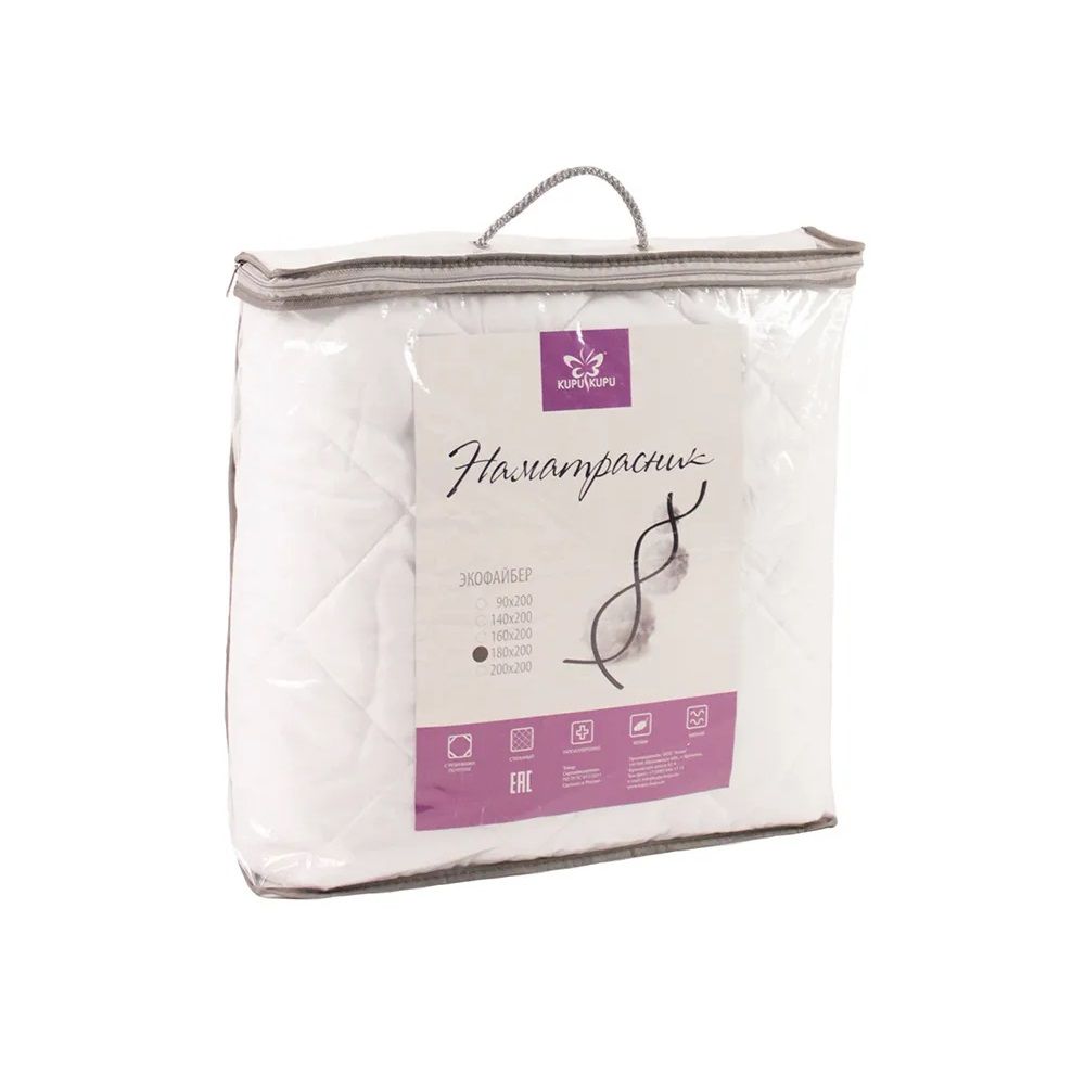 Наматрасник «Экофайбер» стеганый, с тканевым бортом 35 см. Ткань - микрофибра белого цвета. В качестве наполнителя используется силиконизированное полиэфирное волокно Экофайбер 100г/м2. Отличная защита матраса от повреждения. Удобный в использовании, можно стирать в стиральной машине, быстро сохнет и имеет долгий срок службы.