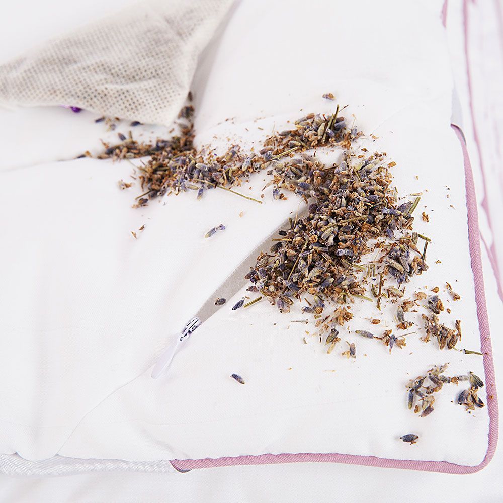 В каждом изделии карман на молнии для саше из натуральных цветков лаванды. Аромат лаванды обладает успокаивающими свойствами. Коллекция «Лаванда» подходит людям жалующимся на бессонницу и тревожность.