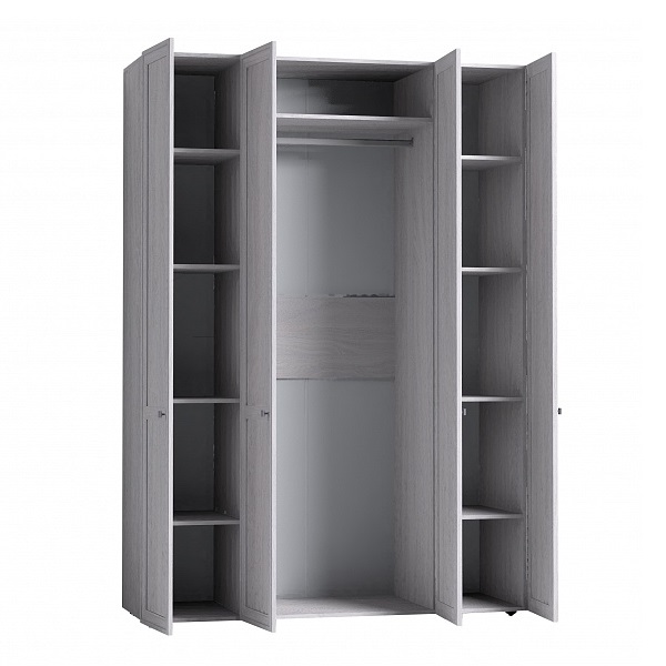 Большой и вместительный шкаф для одежды и белья отлично подойдет для многочисленной семьи. Внутри шкафа стационарная штанга (777 мм), которая выдержит нагрузку в 40 кг, а также полки, регулируемые по высоте. Рамочные фасады, обрамленные сложным профилем МДФ, создают атмосферу роскоши и изящества. Для надежности шкаф обязательно крепится к стене на подвесы. Регулируемые опоры позволят компенсировать незначительные неровности пола. Чтобы мебель идеально вписалась в габариты комнаты, измените ширину шкафа в пределах 150 мм с шагом в 1 мм, используя услугу Ширина ВРАЗМЕР.