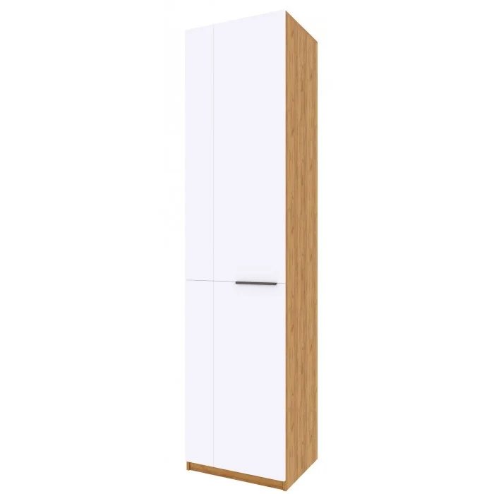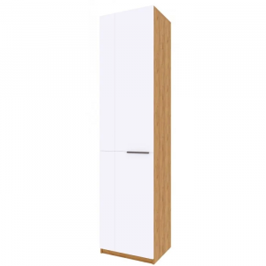 Ширина: 560 мм Высота: 2242 мм Глубина: 430 мм Материал фасада: МДФ Материал корпуса: ЛДСП Цвет: Белый/Крафт золотой