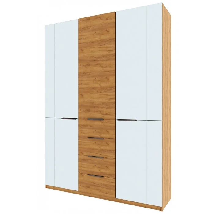 Ширина: 1604 мм Высота: 2242 мм Глубина: 430 мм Материал фасада: МДФ Материал корпуса: ЛДСП Цвет: Белый/Крафт золотой