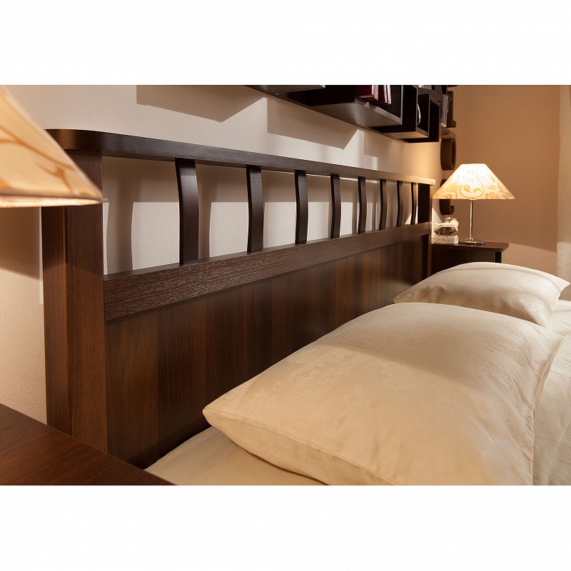 Кровать с решеткой в изголовье - это серия Люкс в коллекции для спальни Sherlock. Именно такую кровать, в стиле викторианской старой Англии, можно назвать кроватью джентльмена: ничего показного, только благородные оттенки и фактуры, долговечные натуральные материалы. Решетка изготовлена из окрашенного массива дерева. Спальное место размером 160х200 см - наиболее популярный вариант: кровать хорошо помещается в планировки российских квартир и позволяет с комфортом отдыхать двоим. Рекомендуемая высота матраса - до 23 см. Он "утопает" в корпус кровати на 4,5 см. Верхняя фигурная планка на изголовье выполнена из ЛДСП 22 мм шириной 7 см. Высота проема от пола до царги составляет 16 см. Данная кровать рассчитана под стационарное ортопедическое основание с гибкими фанерными ламелями с корпусом из металла или дерева. Последнее стоит дешевле, экологично и выдерживает бОльшую нагрузку по сравнению с металлическим (440 кг распределенной нагрузки с учетом веса матраса против 300 кг). Основание не входит в комплект, докупается отдельно. Если вас интересует кровать с подъемным механизмом в стиле коллекции Sherlock, обратите внимание на Sherlock 42.2 Кровать с подъемным механизмом.