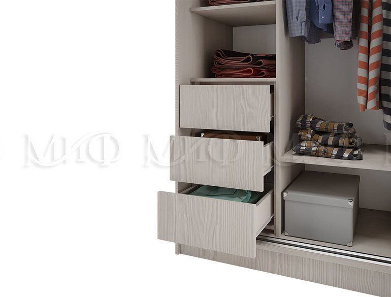 Тринити-6 NEW прекрасно впишется в любой интерьер и порадует вас своей функциональностью, множество полок по периметру шкафа и широкая штанга по центру, разместят все что требуется.