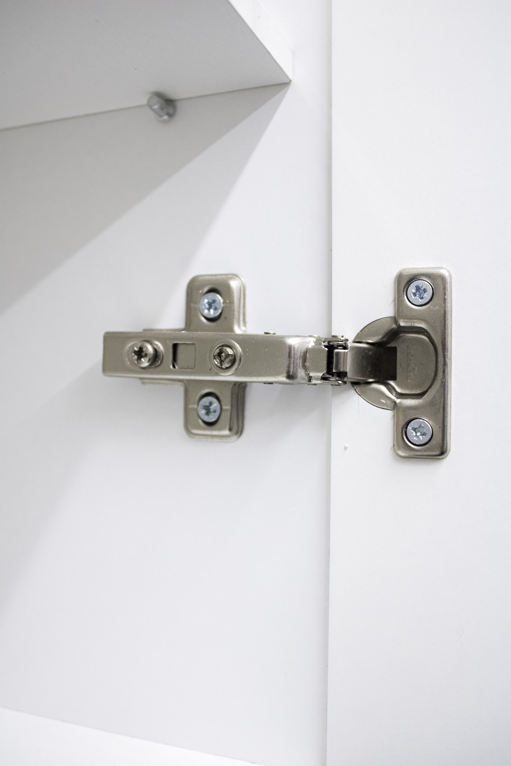 Корпус всей серии изготовлен из ЛДСП, а фасад из ЛМДФ, покрыт пленкой ПВХ. У напольной мебели возможна регулировка ножек до 30 мм, а для удобства в использовании на дверях установлены петли с доводчиком.