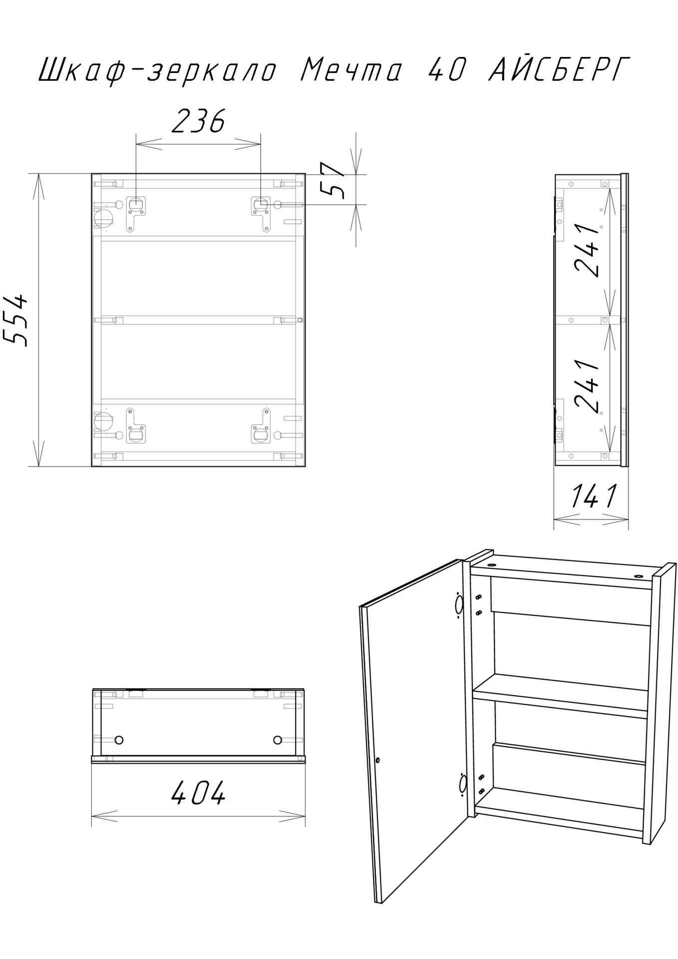 DOMINO Шкаф зеркало Мечта 40 левый/ правый Айсберг DM2304HZ / DOMINO 124763 124763 Серия МЕЧТА  от компании АЙСБЕРГ привлекает внимание плавными линиями и лаконичным дизайном. Эстетичность моделей, вошедших в серию Мечта принесет уют и комфорт в вашу ванную комнату. Шкаф – зеркало МЕЧТА внутренне пространство которых разделено полками для удобства размещения гигиенических принадлежностей. Тумбы подвесные под умывальник с распашными дверцами и полкой для хранения.  Напольная тумба под умывальник МЕЧТА с распашными дверцами, на регулируемых ножках до 30 мм. Серия изготовлена из ЛДСП и ЛМДФ, покрытого пленкой ПВХ. Петли оснащены доводчиками для бесшумного использования. Мебель поставляется в собранном виде.