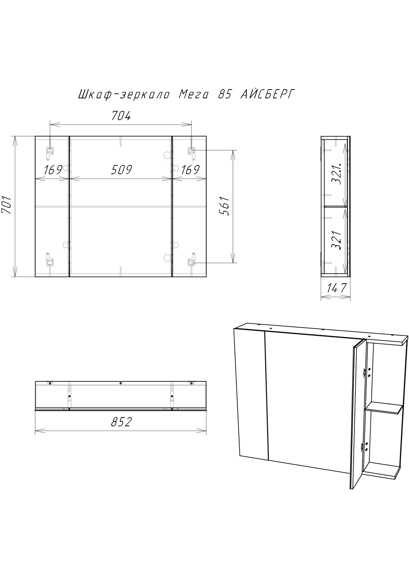 В серию МЕГА входят тумбы под умывальник от 75 см до 105 см в ширину. В серию вошли зеркальные шкафы от 75 см до 105 см. Завершает серию два пенала 25 см и 55 см шириной.