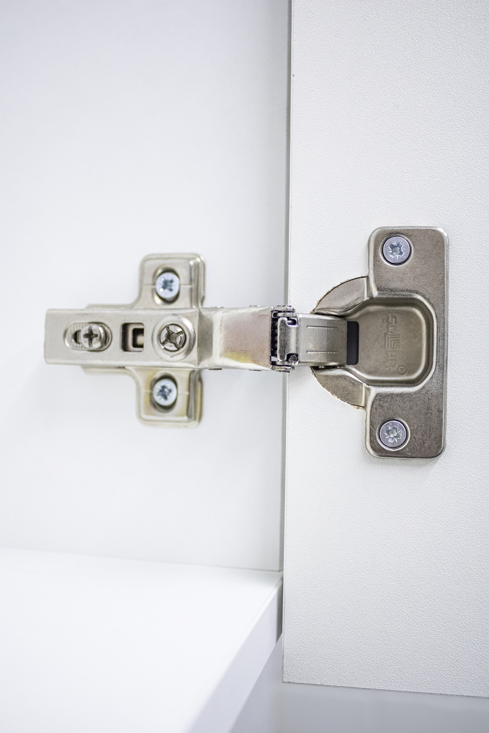 У напольной мебели возможна регулировка ножек до 30 мм, а для удобства в использовании на дверях установлены петли с доводчиком.