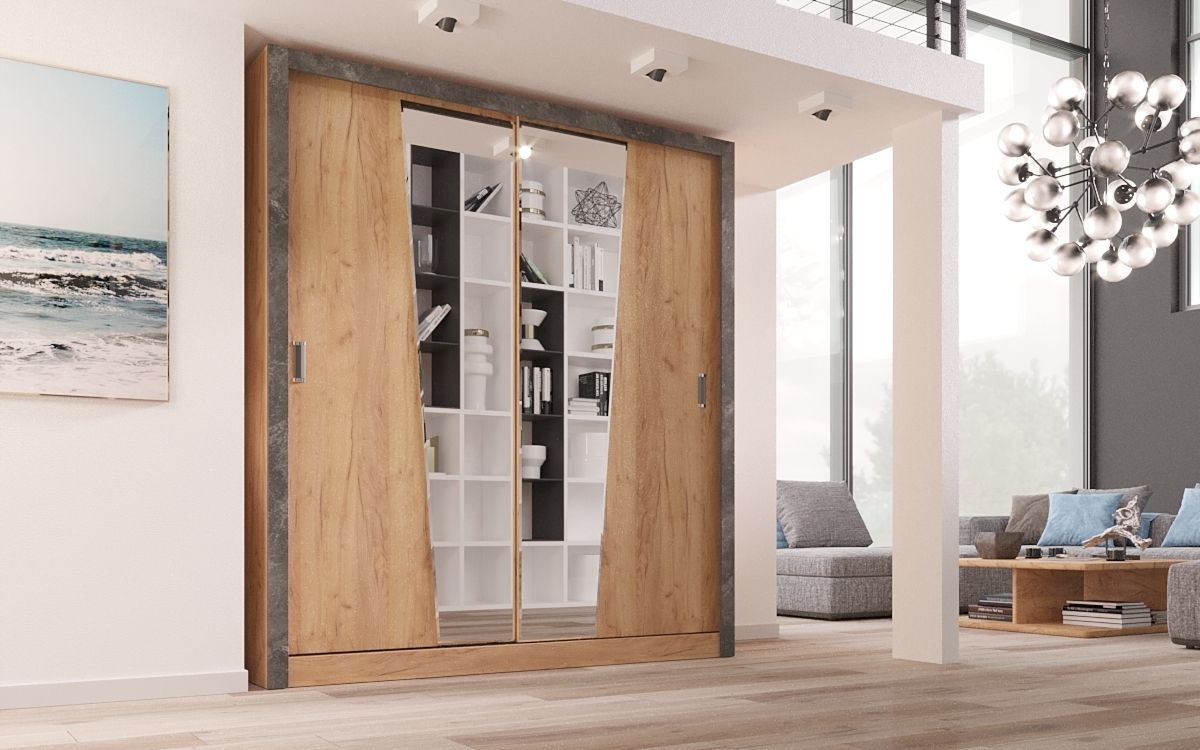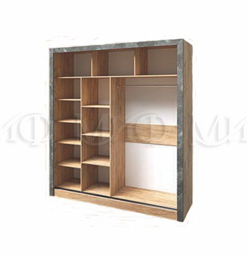 Шкаф-купе Соренто - это вместительный шкаф с многочисленными полками и штангой для вешалок, выполненный в стильном дизайне с нестандартной геометрией междверных стыков.