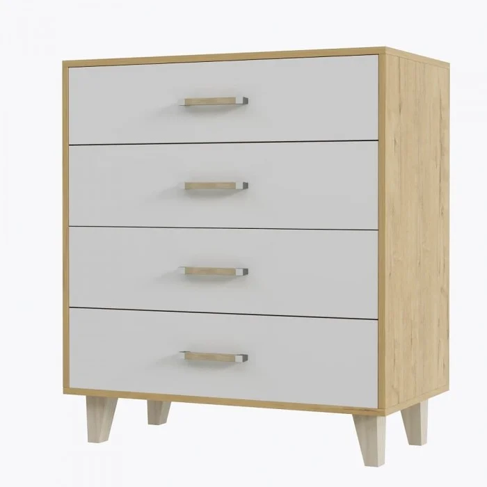 Спальня Сканди (Д) Комод (800) Дуб бунратти/ Белый с доводчиками Материал: ЛДСП Цвет: Дуб Бунратти/Белый Материал ножек: Бук