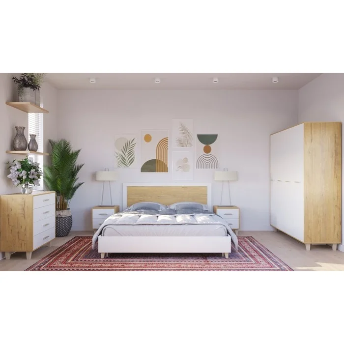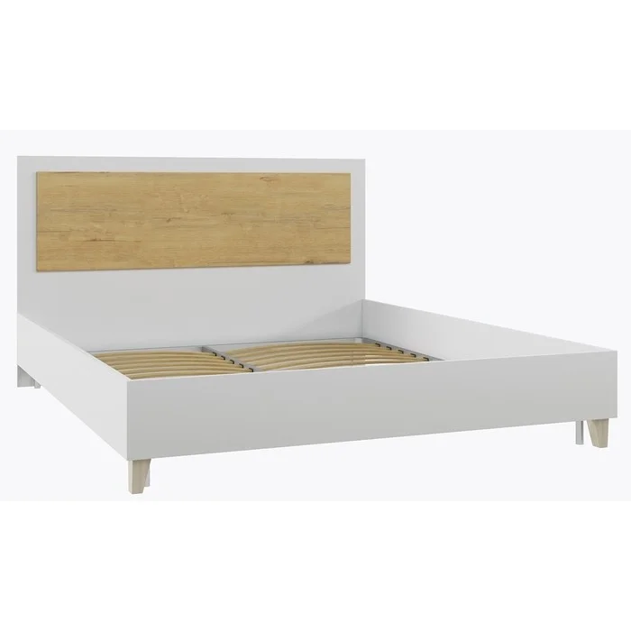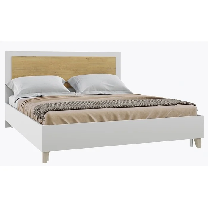 Спальня Сканди Кровать (140) БЕЗ ортоп.основания (Дуб бунратти/ Белый) Материал каркаса: ЛДСП Материал ножек: Бук Цвет: Дуб Бунратти/Белый
