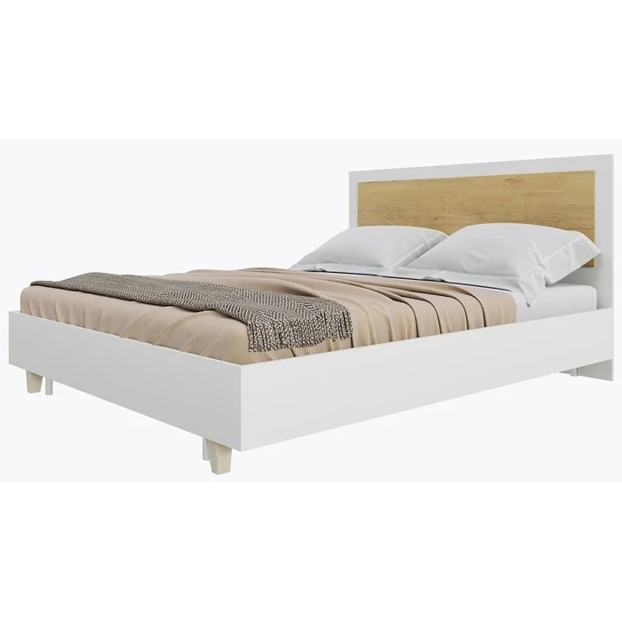 Спальня Сканди Кровать (140) БЕЗ ортоп.основания (Дуб бунратти/ Белый) / MEBELPLUS