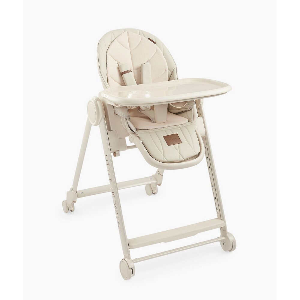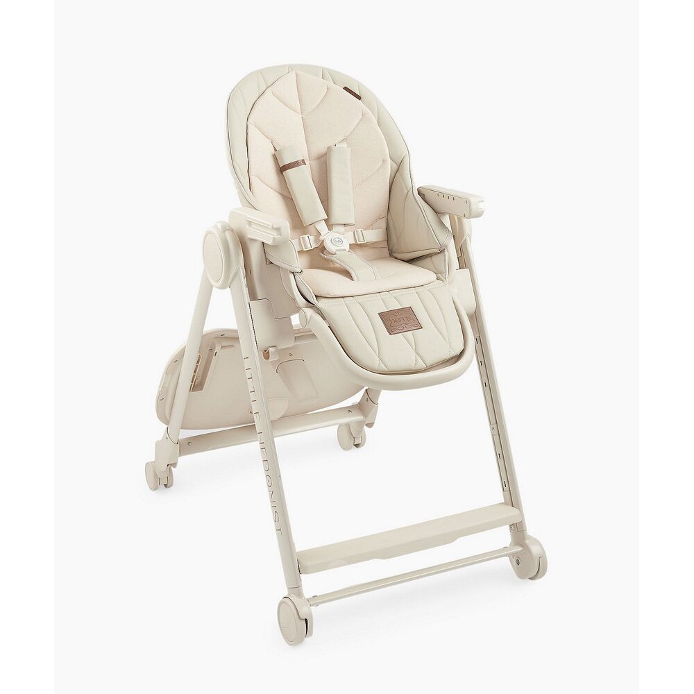 Стул для кормления Happy Baby "BERNY LUX" beiqe, от 6 м., задние поворотные колёса с тормозным механизмом, 3 наклона спинки, 3 наклона подножки, 5 положений сидения, 3 положения столика, вкладыш на спинку из хлопка, максимальный вес 25 кг