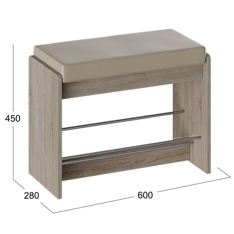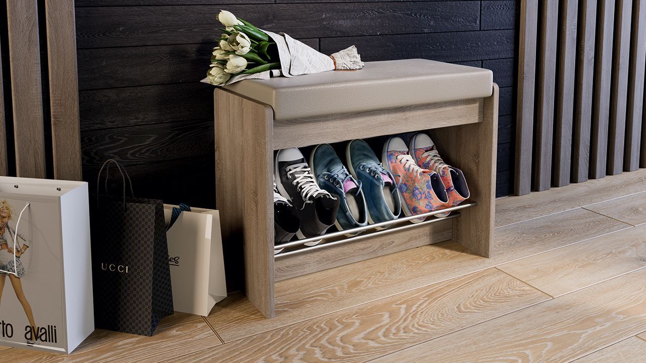 Тумба для обуви «Тайм» - это прекрасный выбор небольшого и функционального предмета мебели, который оснащен открытыми полками, что позволит быстро найти нужную пару обуви, а мягкое сиденье сделает процесс переобувания комфортным.