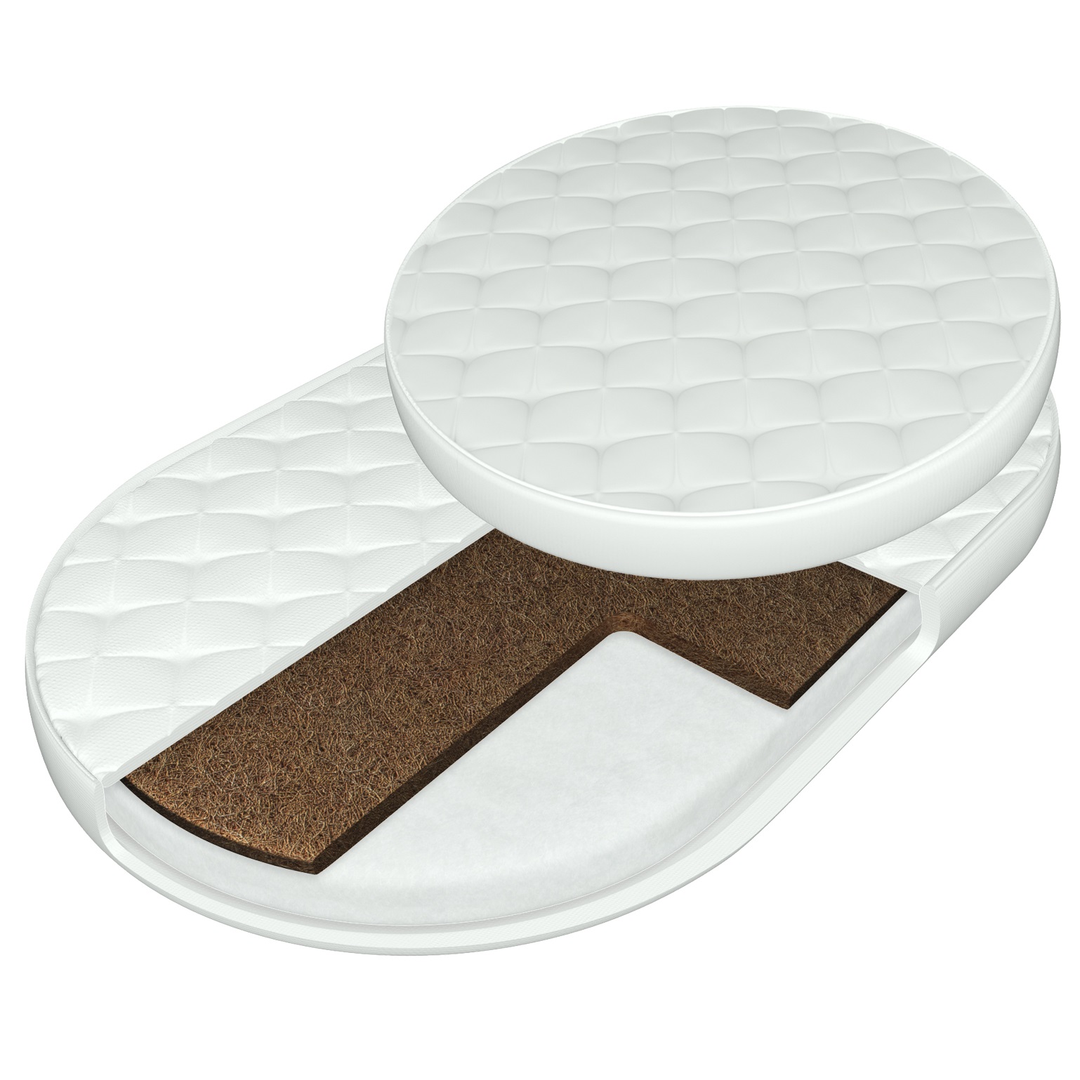 Комплект беспружинных двусторонних матрасов средней степени жесткости для овальных кроватей-трансформеров.