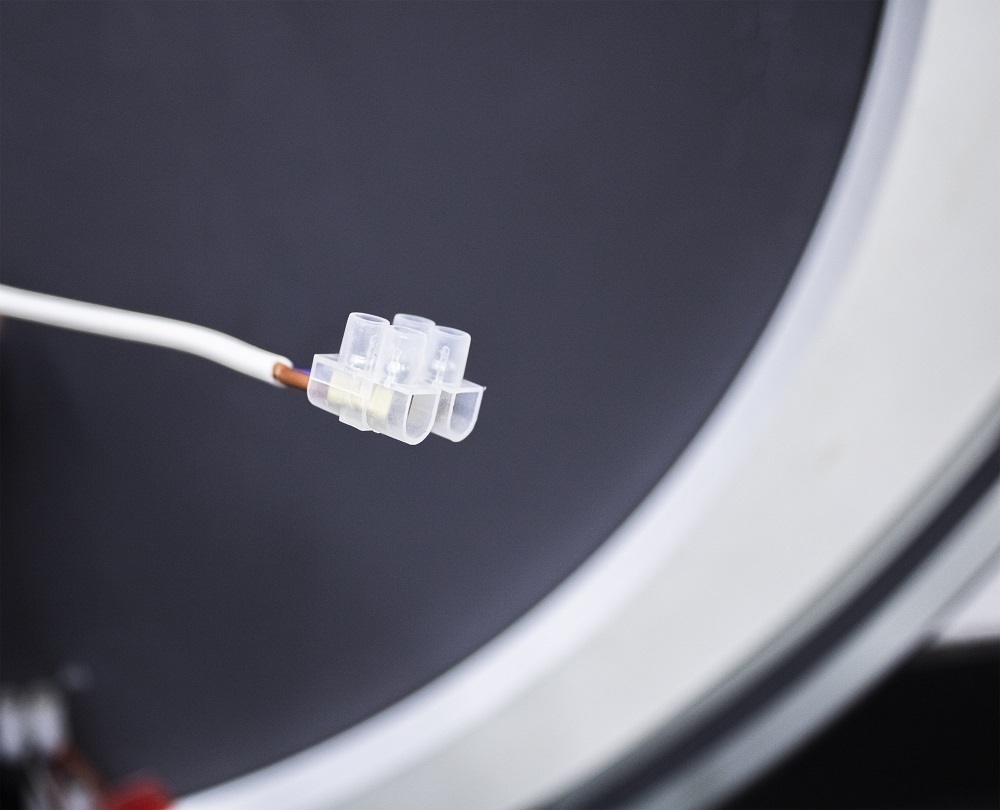 - В комплектацию зеркала входит источник питания, стабилизирующий напряжение (трансформатор), что позволяет подключать изделие к сети 220В.