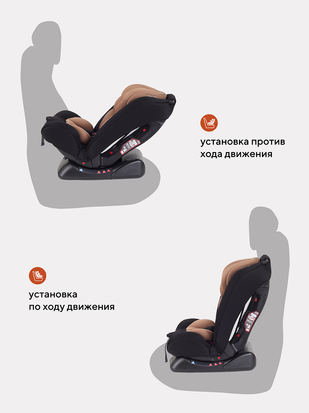 изделие дополнено фиксатором штатного ремня, позволяющим жестко фиксировать автокресло в салоне автомобиля