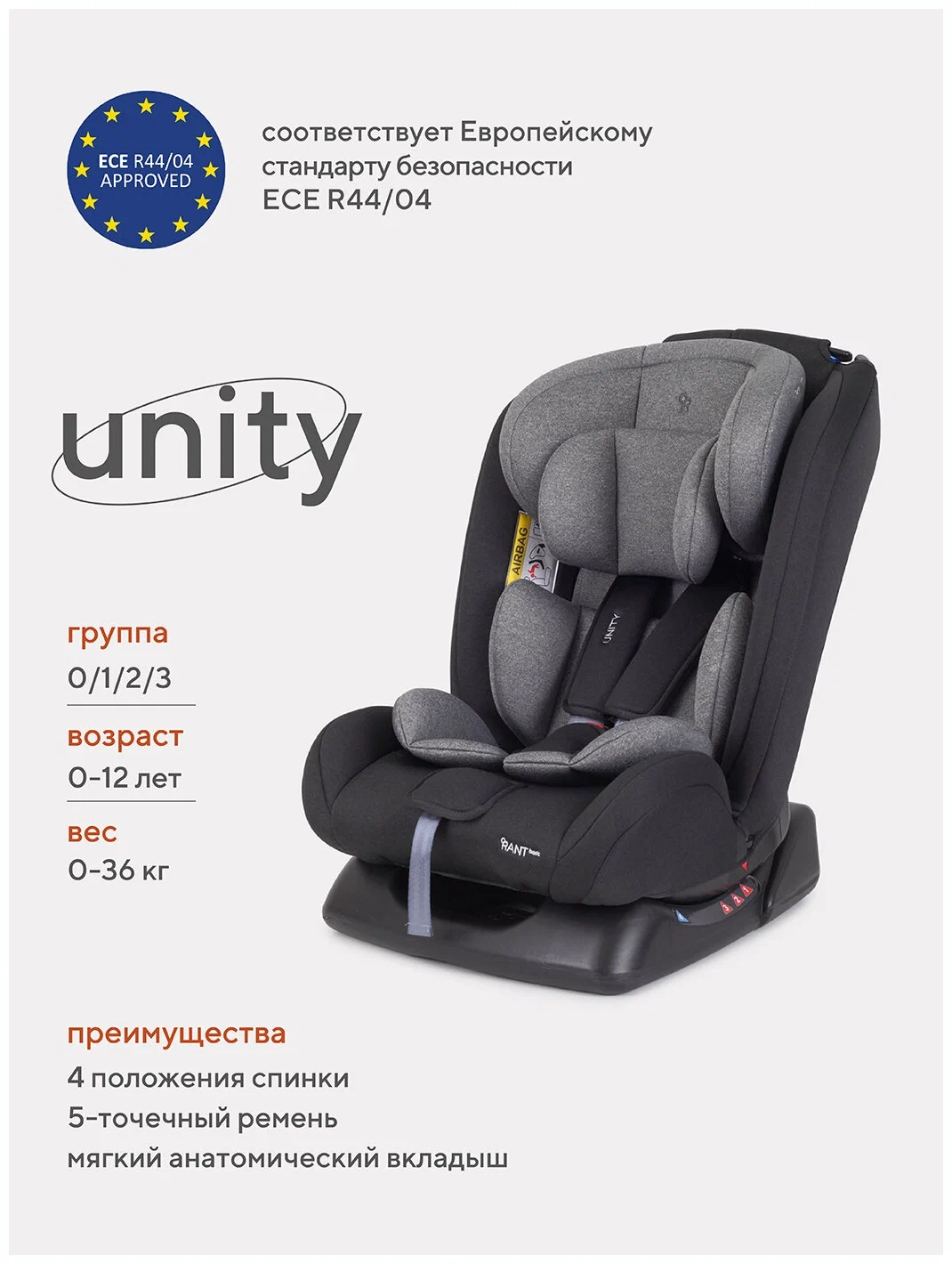 Автокресло детское Rant basic Unity арт. ZY26, группа 0+/1/2/3 от 0 до 12 лет вес 0-36 кг рост 40-145 см