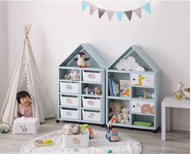 Детская книжная полка Yeya с картинками, 6 контейнеров для игрушек