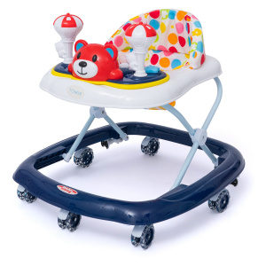 Яркие музыкальные ходунки с милым медвежонком на игровой панели не оставят равнодушными ни малышей, ни их родителей. Возможность регулировки высоты ходунков позволяет выбрать нужное положение под рост ребенка. Мягкое сиденье с высокой спинкой обеспечивает комфорт. Ткань сиденья съемная, что упрощает уход за ходунками. Спереди ходунков располагается игровая панель с музыкальными кнопками, которые подсвечиваются. Малыш может прослушать 3 веселые мелодии. Ходунки компактно складываются и оснащены 7-ю пластиковыми колесами. Есть возможность зафиксировать ходунки с помощью встроенных стопперов.