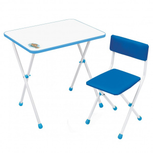 Детский комплект NIKA (КНД1/Г голубой) от 3 до 7 лет, столешница в классическом дизайне и рисунком, сиденье стула с водоотталкивающей пропиткой, вес 6 кг
