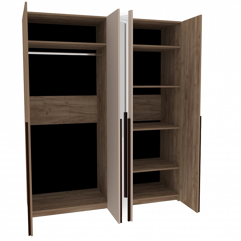 Шестидверный шкаф для одежды и белья с зеркалами — находка для спальни любых габаритов. Продуманное внутреннее наполнение шкафа делает его поистине универсальным. Шкаф оснащен отделениями для хранения белья с регулируемыми по высоте полками и отделением для одежды со стационарной штангой.